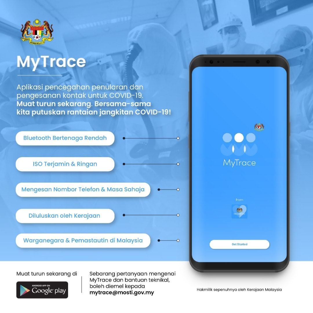 Aplikasi MyTrace menggunakan teknologi `Bluetooth' di mana ia membolehkan telefon bimbit pengguna mengesan kehadiran pengguna lain apabila berada hampir dengan mereka yang telah dijangkiti COVID-19.